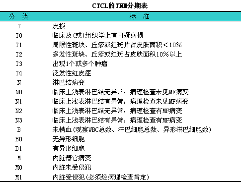 美国MF研究协作组TNM分类法(见下表)