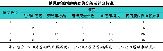 他们制定了糖尿病视网膜病变的分级颌评分标准(见下表)。