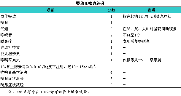 1.评分标准对过去出现咳喘反复发作≥3次的婴幼儿进行评分(见下表)。