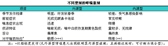 小儿哮喘按其发病年龄及临床特点分成3种:i儿童哮喘、i婴幼儿哮喘、i过敏性咳嗽。由于许多疾病临床表现可与哮喘相混,l诊断时必须首先排除呼吸道异物、i先天性气道畸形、i支气管内膜结核、i肺门淋巴结核、i心源性喘息、i过敏性肺炎等疾患。