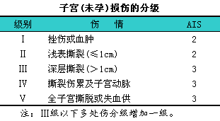 子宫(未孕)损伤的分级见下表。