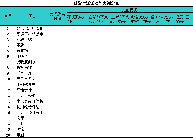 在检查和评定日常生活活动时,l其完成的能力可分为五级:i