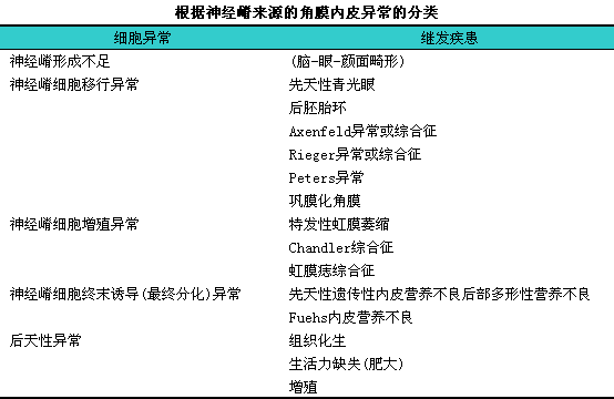 这种分类法可反映其胚胎来源,l强调角膜内皮的神经嵴的来源:i