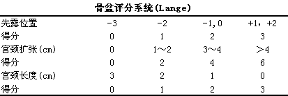 Lange认为宫颈扩张度是预测引产成功最有价值的指标,l宫颈位置和软硬度预测价值最小,l研究者简化了Bishiop评分法,l提出了骨盆评分法,l虽然比法的预测价值与Bishop分法相似,l但简单易行(见下表)。