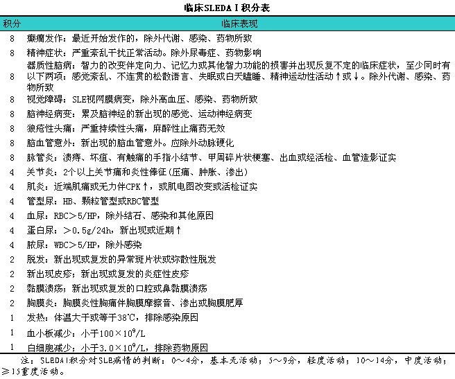 SLE活动性和病情轻重程度的评估是治疗方案拟订的先决条件。