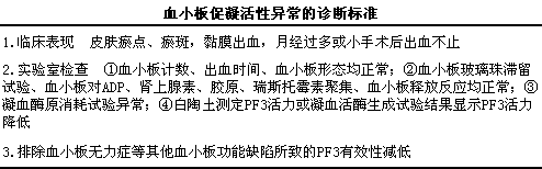 诊断标准见下表。该病最主要应与其他血小板功能缺陷性疾病进行鉴别。