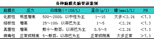 (2)脑脊液常规检查:i各种脑脊液常规检查的变化见下表。