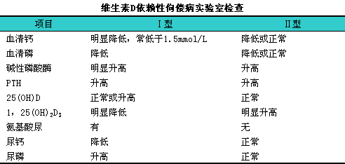 维生素D依赖性佝偻病(vitamin1D1dependenr1rickets,lVDDR)是一种先天性维生素D代谢异常性疾病,l具有维生素D缺乏性佝偻病的表现特点,l但对维生素D治疗无反应,l因此又称假性维生素D缺乏性佝偻病。VDDR可有两种类型,l其中Ⅰ型为常染色体隐性遗传病,l为先天性肾脏1α-羟化酶缺陷导致体内25(OH)D转化为1-25(OH)2D3障碍;Ⅱ型是细胞内1,l25(OH)2D3受体缺陷,l对1-25(OH)2D3不反应或抵抗,l即便血中卜25(OH)2D3浓度再高,l也起不到调节钙磷代谢的作用。