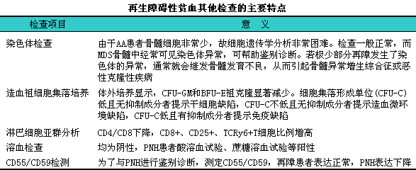 详见下表。此外,l还有促红细胞生成素(EPO)、i促血小板生成素(TPO)、i粒细胞集落生成因子(G-CSF)水平升高。血清白细胞介索2(IL-2)、i干扰素(IFN-γ)、i肿瘤坏死因子(TNF)水平增高;血清铁常升高,l血清转铁蛋白饱和度增高,l血清总铁结合力降低等,l但这些检查对再障的诊断意义不大,l可作为选择性检查。