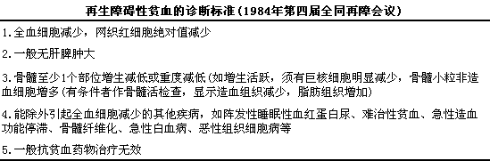 再障的诊断标准见下表。诊断为再障后,l再根据患者的临床表现、i血象及骨髓象综合分析,l再分为急性和慢性再障。以全血细胞减少为主要表现的疾病均需和再障鉴别。血涂片检查、i网织红细胞计数、i骨髓穿刺是必须做的基本检查。