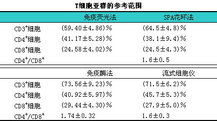 3)T淋巴细胞各业群间处于相互制约和相互辅助的平衡之中,l任何一方的增加和减少者将影响其他亚群而形成失调。CD4+/CD8f比值更能反映免疫调节变化。