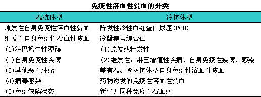 临床上免疫性溶血性贫血的分类见下表。根据血清学特点,l免疫性溶血性贫血可以分为:i①温抗体型:i抗体于37℃时作用最强,l主要是IgG,l不能凝集细胞;②冷抗体型:i抗体于20℃时最活跃,l主要是IgM,l在低温时可凝集细胞。③混台抗体型。冷抗体型自身免疫性溶血性贫血比温抗体型自身免疫性溶血性贫血少见,l大约占自身免疫性溶血性贫血的20%。