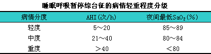 (1)原发性鼾症:i有明显的鼾声,lPSG检查AHI<5次/h,l无低氧血症,l多无白天嗜睡等临床症状。