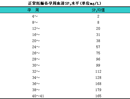 (3)参考范围:i妊娠期间血清SP1水平见下表。
