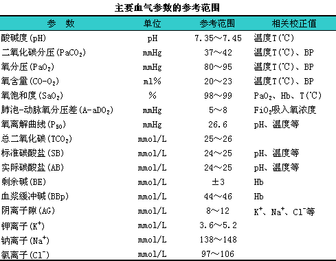 (2)PaO2危及生命的警示值是20~25mmHg。