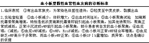 诊断标准见下表。该病主要应与Ⅱb型血管性血发病进行鉴别。