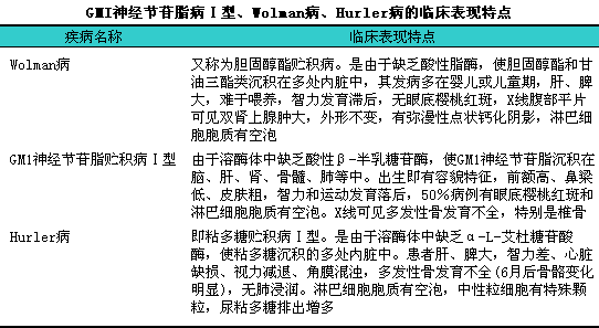 凡临床上有肝、i脾大伴贫血,l骨髓、i肝、i脾和淋巴结组织中有成堆泡沫细胞,l可诊断尼曼-匹克病,l有条件的单位测定酸性鞘磷脂酶活性、i基因分型对诊断本病及亚型具有决定性意义。本病需与骨髓中见到泡沫样细胞的其他疾病鉴别:i如慢性髓细胞白血病、i特发性血小板减少性紫癜、i珠蛋白生成障碍性贫血、iGM1神经节苷脂病Ⅰ型、iWolman病、iHurler病等加以鉴别,l后三者特点见下表。