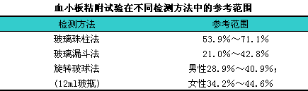 1)检测方法:i血小板粘附试验(platelet1adhension1test,lPAdT)是利用血小板在体外可粘附于玻璃的原理设计的。根据所使用玻璃器材不同,l将血小板粘附试验分为玻璃珠柱法、i旋转玻球法及玻璃漏斗法。基本原理是将离体的新鲜全血置玻璃珠柱或玻璃漏斗或旋转的玻璃球中,l同玻璃接触一定时间后,l计数接触前、i后的血中血小板数,l得出血小板粘附率。