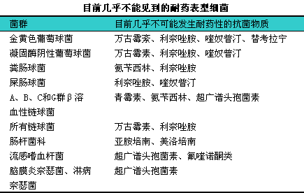 2.目前几乎还没有观察到耐药表型的细菌,l见下表。即使实验室没有报告,l临床需要时也可及时使用。