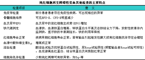 是诊断PRCA最重要的实验室检查。PRCA的骨髓象特点为:i骨髓增生活跃或增生减低,l粒红比值增加,l红系增生减低,l各阶段有核红细胞明显减少(<3%~5%)或缺如,l巨大原红细胞未见,l粒系、i巨系一般正常,l但由于有核红细胞明显减少,l所以粒系百分比相对增加,l少数患者巨核细胞数可增加,l粒、i红及巨系细胞的形态基本正常。