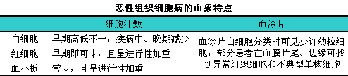血细胞进行性下降是恶性组织细胞病的特点之一。由于该病的病程进展快,l就诊时血象正常仅占10%,l而后血细胞数量呈进行性下降,l所以临床上大多数患者表现为全血细胞减少,l详见下表。用外周浓缩血涂片(即用物理抗凝血离心后,l取白细胞层制备而成的血涂片)找异常细胞,1可提高异常组织细胞的检出率。送检标本的制备如下:i抽取静脉血5ml,l注入干净的玻璃试管中(试管中不需要加任何抗凝剂,l也不能含分离胶),l用竹签搅拌静脉血10分钟,l丢弃竹签,l此时试管中的血就是物理抗凝血,l然后送检即可。当大量异常组织细胞在外周血中出现,l白细胞数可高至(10~100)×109/L以上,l则称为“白血病性恶性组织细胞病”。患者网织红细胞计数正常或轻度增高。