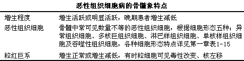 详见下表。骨髓检查的最主要特征是可见一定数量的恶性组织细胞,l其中异常组织细胞和多核巨组织细胞对恶性组织细胞病具有重要诊断价值;而吞噬性组织细胞、i淋巴样组织细胞及单核样组织细胞在其他疾病中也可出现,l缺乏特异性诊断价值。至于骨髓中异常组织细胞占多少比例方可诊断,l一直无明确规定。
