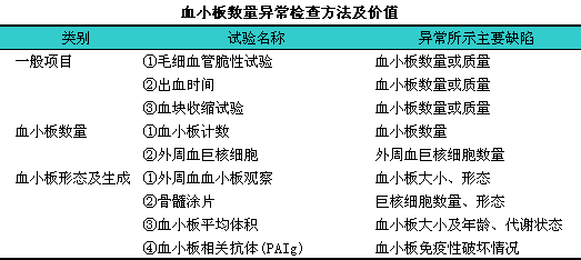 (2)检测方法:i自动血液细胞分析法、i显微镜观察、i束臂压迫法、i计时法。