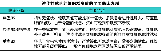 为慢性血管外溶血,l表现为贫血、i黄疸和脾大三大症状。遗传性球形红细胞增多症的症状与体征通常轻微,l贫血可被有救地代偿;脾大几乎在所有患者中发生,l但很少引起腹部不适,l肝可肿大;并发感染、i劳累等可诱发急性溶血或再生障碍危象而加重贫血。遗传性球形红细胞增多症患者常并发胆道结石,l还有下肢反复性溃疡等。根据遗传性球形红细胞增多症不同的临床表现,l可分为三型,l各型临床特点见下表。