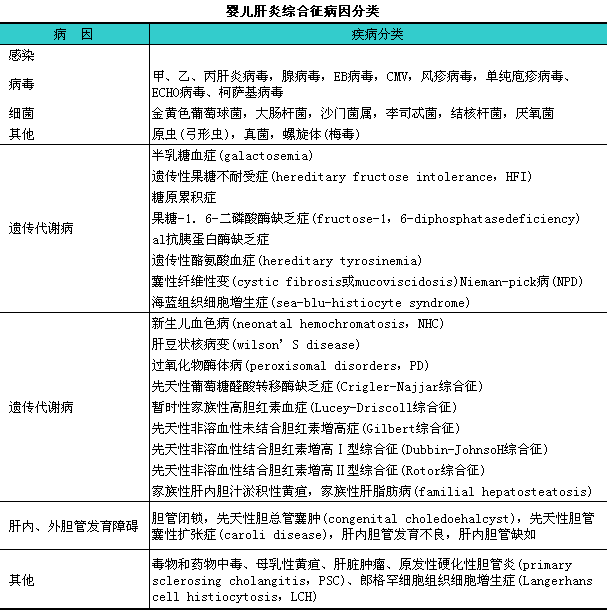 曾有文献报道感染性疾病引起的婴幼儿肝炎综合征占46.3%。婴儿期易患感染,l感染引发肝细胞损害,l对胆红素代谢产生影响进而引起黄疸及肝功能异常。有些病例不但有肝细胞的损害,l还有全身感染导致的胆管壁增厚、i胆汁黏稠淤积、i排泄受阻(见下表)。