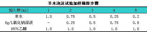 取口径12~14mm的有塞尖底试管5支,l按下表分别加人不同量的羊水和试剂。