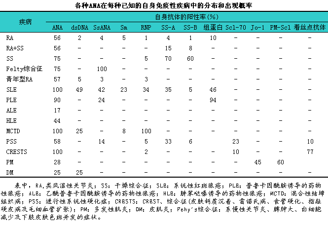 (4)临床诊断价值和评价:iANA有助于变态反应性神经炎、i结缔组织病引起的神经病及单克隆丙球症等诊断(见下表)。
