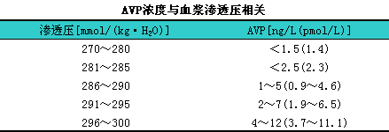 (3)参考范围:iAVP浓度与血浆渗透压相关,l具体见下表。