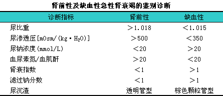 3.肾前性及缺血性急性肾衰竭的鉴别诊断肾前性及缺血性急性肾衰竭的尿液与血液诊断指标,l如下表示:i